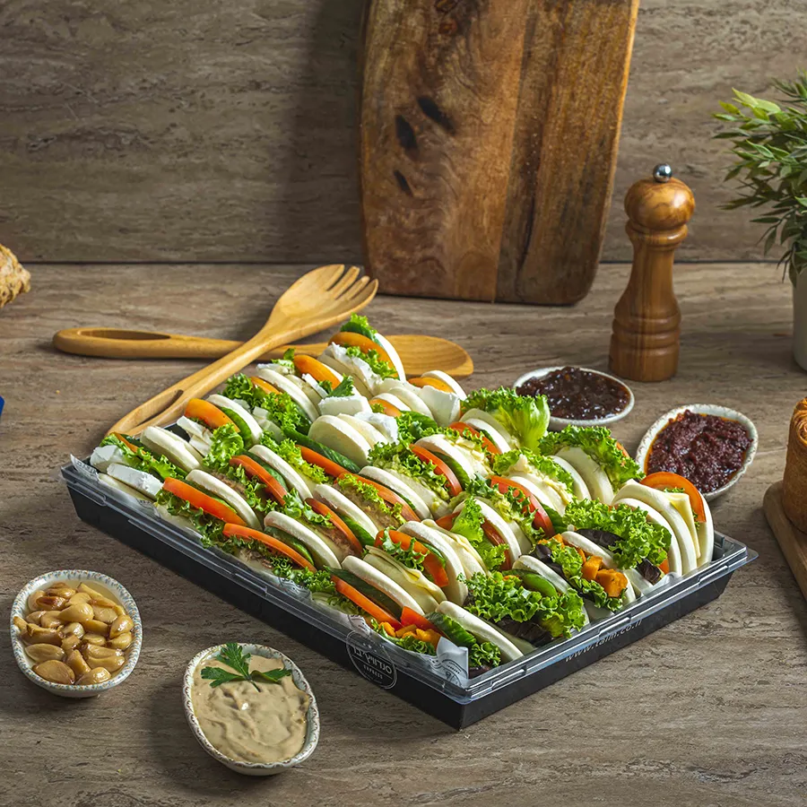 מגשי האירוח של סנדוויץ' בר מותאמים לכל האירועים. הכול טרי, מסודר ומוכן לשולחן. עם כשרות מהודרת של רבנות ראשון לציון וחוג חתם סופר – כולם יכולים ליהנות בראש שקט.