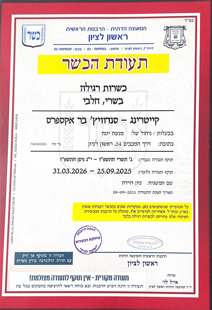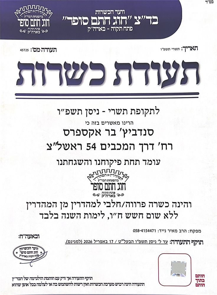 כשרות חתם סופר | כשרות הרבנות הראשית ראשל"צ
