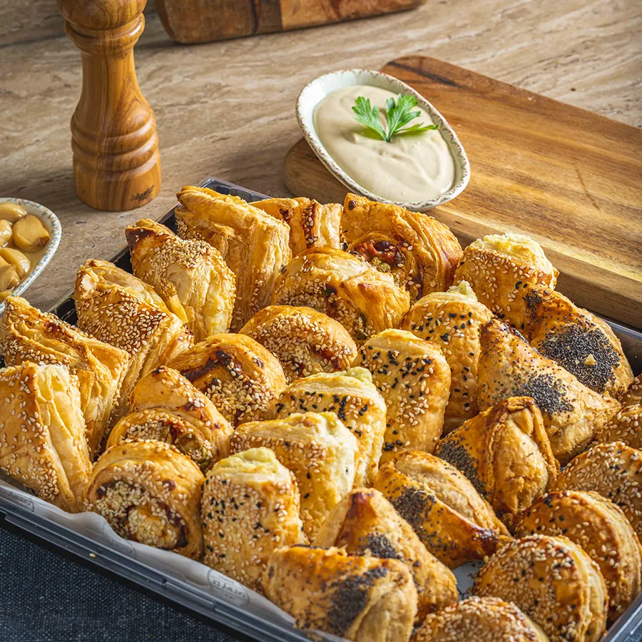 מאפי פילו בטעמים: גבינה, תפוח אדמה ופיצה. 30 יחידות