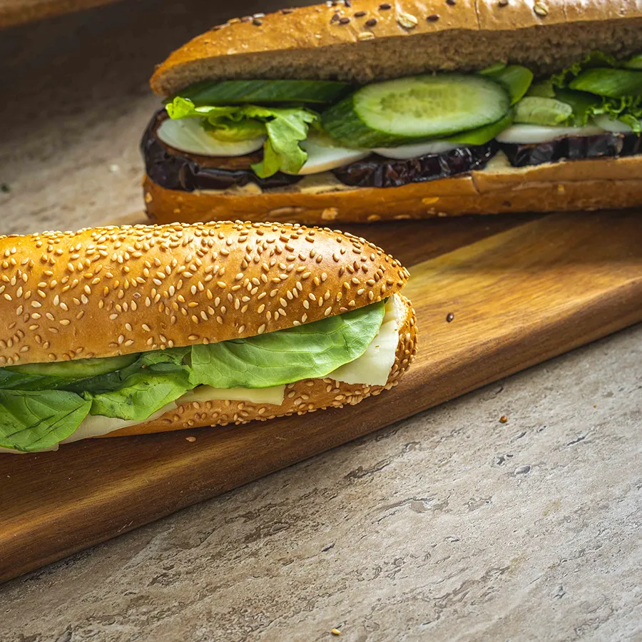 טבעוני – טחינה, חציל, מלפפון חמוץ וחסה