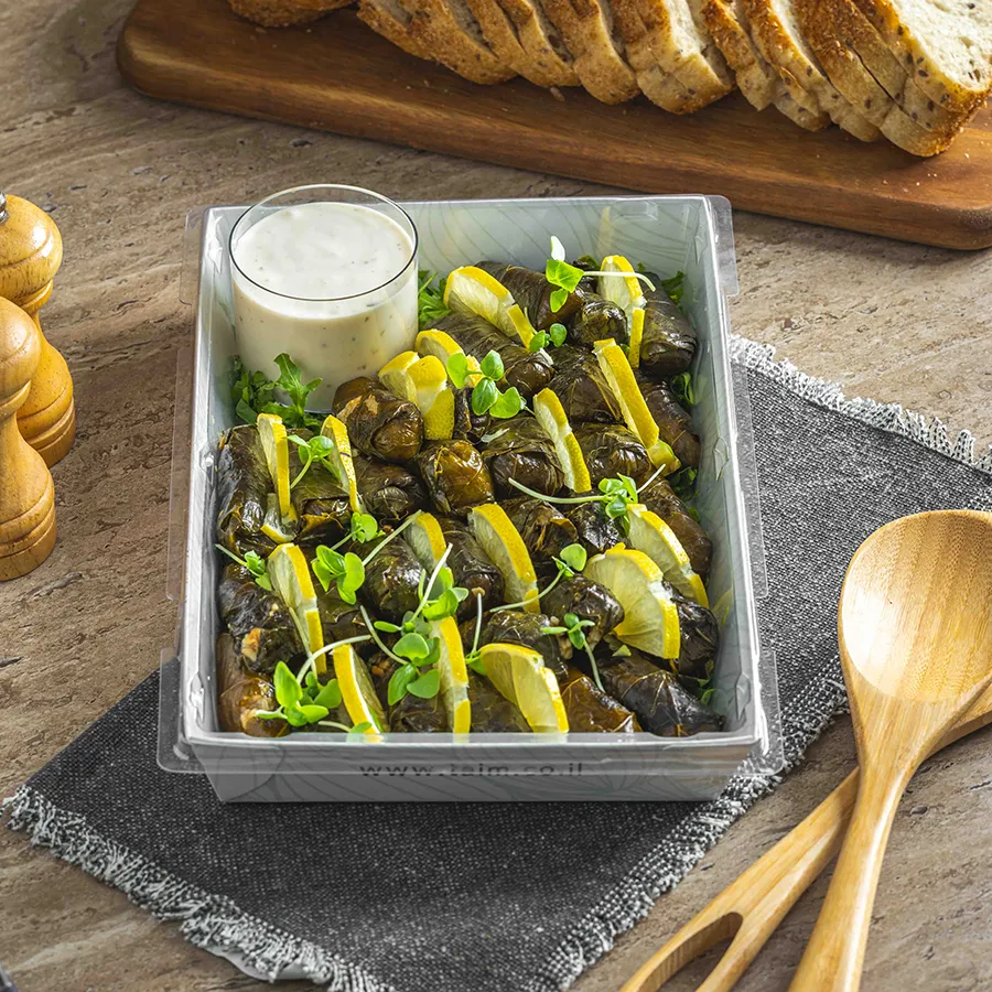 מגש עלי גפן בעבודת יד בלווי רוטב יוגורט / טחינה לבחירה. 30 יחידות