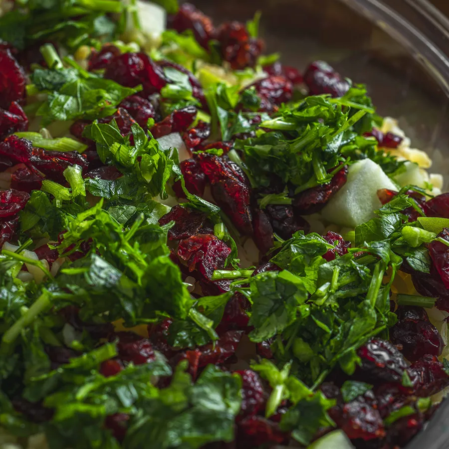 בורגול בתוספת תפוחי עץ, חמוציות, אגוזי מלך, פטרוזיליה ברוטב הדרים
