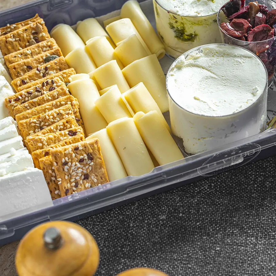 גאודה, פטה, צפתית, שמנת, לאבנה. מומלץ להוסיף מגש לחמים/עוגיות מלוחות.