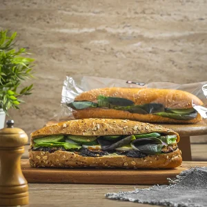 טבעוני – טחינה, חציל, מלפפון חמוץ וחסה
